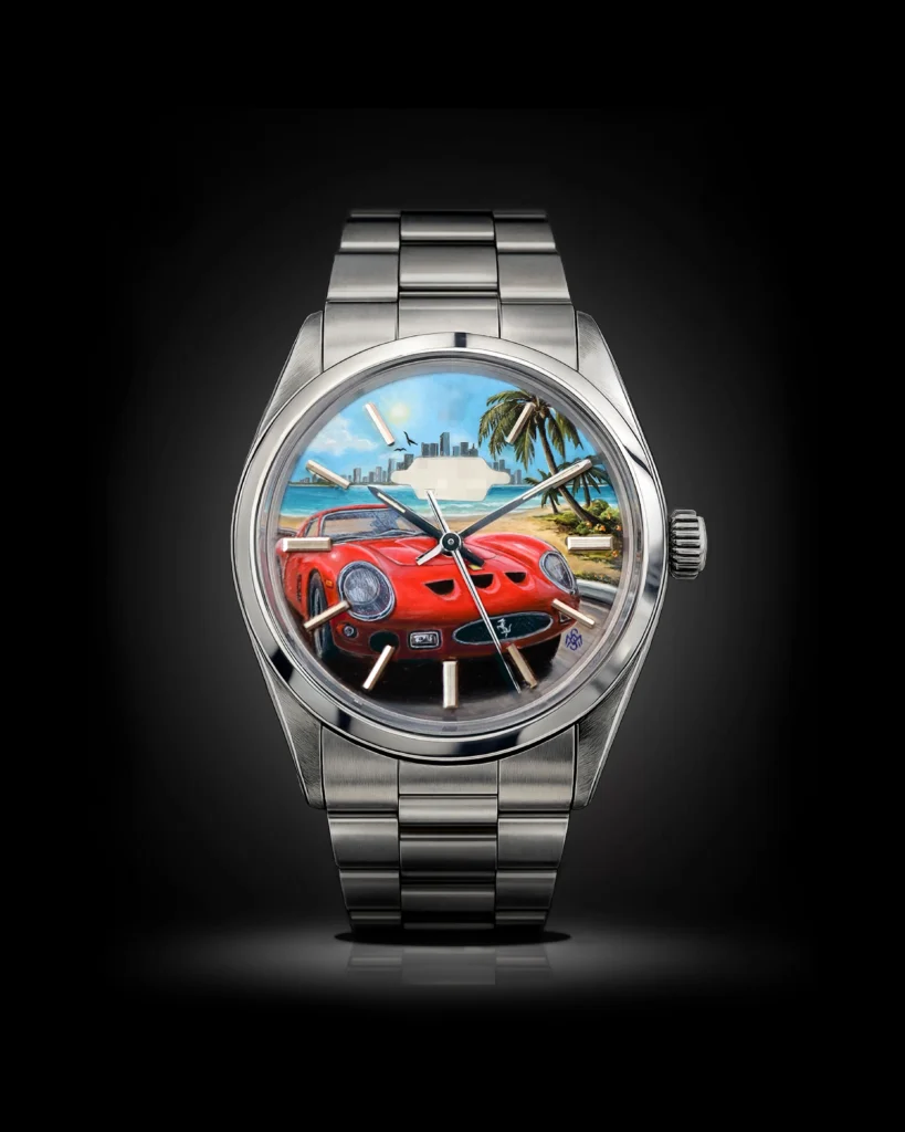 Our hand-painted landscape and iconic red Ferrari 250 GTO design. If you have a special car that inspires you, send us your idea. We would love to create a one-of-one design just for you.